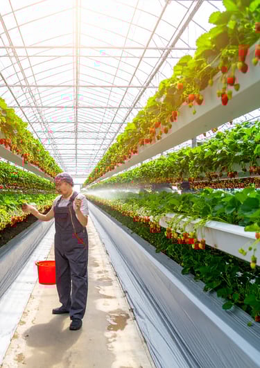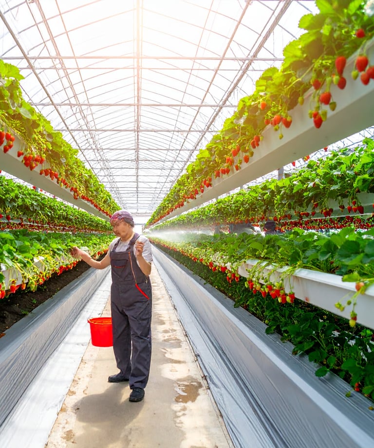 Our dedicated strawberry house is optimized for premium-quality production, using elevated growing systems and controlled humidity. Workers carefully maintain and harvest ripe strawberries to ensure freshness, flavor, and maximum yield year-round.
