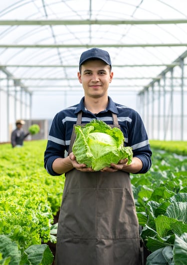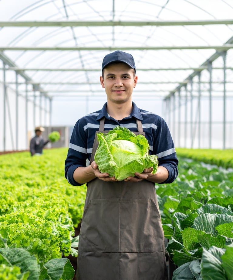 Our spacious cabbage greenhouse is built for large-scale leaf crop cultivation. With well-organized planting rows and expert handling, workers harvest firm, healthy heads of cabbage at peak freshness for wholesale and retail supply.
